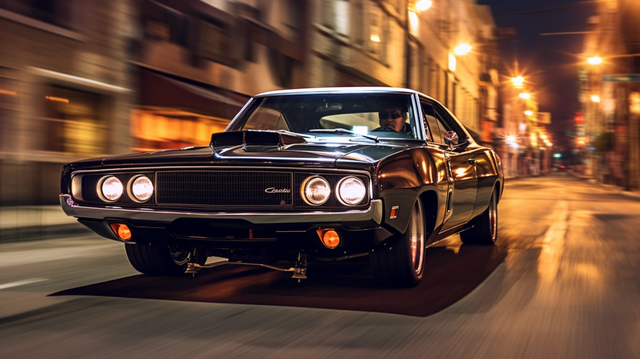 - Dominic jeździ charakterystycznym czarnym Dodge'em Chargerem z 1970 roku z silnikiem V8.
